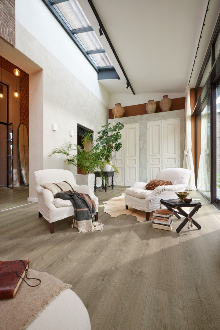 MeisterDesign. comfort ist der komfortable Wohlfühlboden mit der Extra-Schicht Kork. Er erreicht beste kombinierte Geh- und Trittschallwerte und benötigt bei der Verlegung keine zusätzliche Dämmunterlage. Weil er so leise, gelenkschonend und fußwarm ist, eignet er sich besonders gut für Wohn- und Schlafräume, aber auch für Kinderzimmer. Auf der Landhausdiele (DL 600 S) mit über 2 m Länge kommt das hochwertige Dekor besonders zur Geltung.