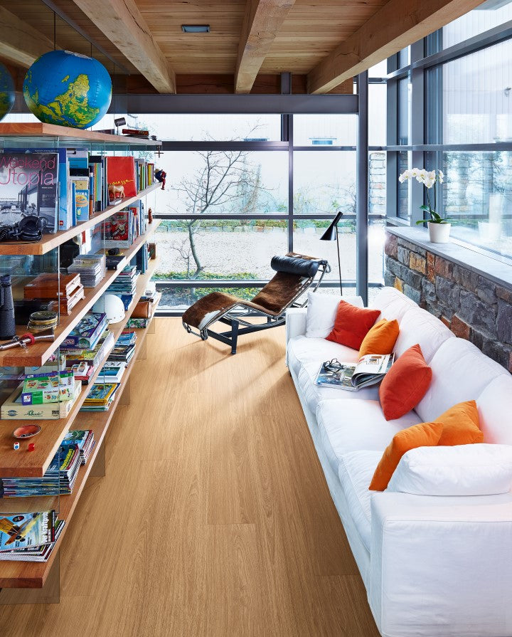 MeisterDesign. flex ist der moderne Renovierungsboden mit geringer Aufbauhöhe. Damit wird das Verlegen zum Kinderspiel - Altuntergründe wie beispielsweise Fliesen müssen nicht entfernt werden, denn unter den stabilen Dielen zeichnen sie sich nicht ab. Mit 4 h Wasserresistenz ist MeisterDesign. flex außerdem absolut unempfindlich und sogar für die Verlegung in Feuchträumen geeignet. Das beeindruckende Langdielenformat (2055 x 216 mm) lässt die authentischen modernen Dekore der Kollektion DL 400 perfekt zur Geltung kommen.