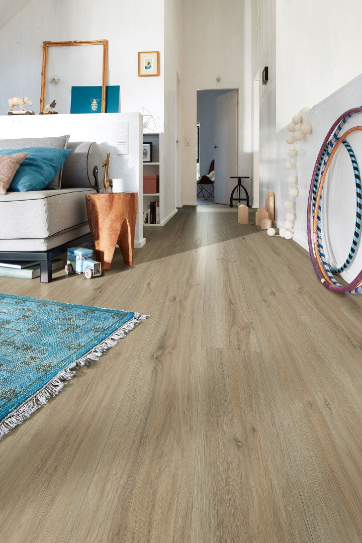 Der Designboden MeisterDesign. rigid RL 400 S ist unsere besonders belastbare Rigid-Landhausdiele! Die Rigid-Polymer-Trägerplatte sorgt im Zusammenspiel mit der integrierten Trittschallkaschierung für eine schwere und dadurch schwingungsdämpfende Konstruktion. Die hochwertige Oberfläche mit Excimer-Lackierung macht den Boden besonders gleichmäßig matt. Mit dem schicken Landhausdielenformat ist RL 400 S zudem absoluter Trendsetter. Die dünne umlaufende Microfase unterstützt den hochwertigen Eindruck!